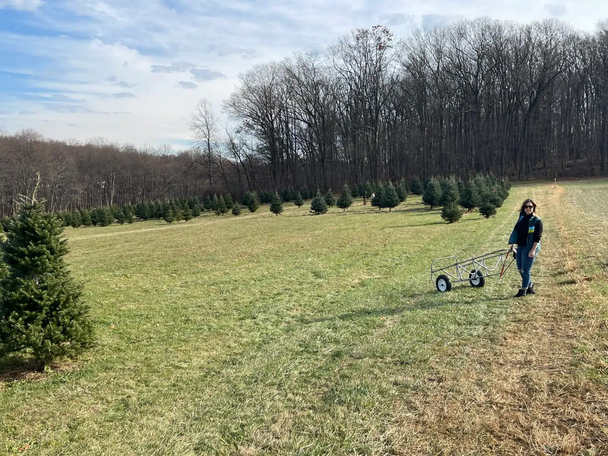 Once you park you’ll be directed to get a wheeled cart that you’ll use to bring your freshly cut tree back to home base. Time to search for your Christmas tree, which is super fun!