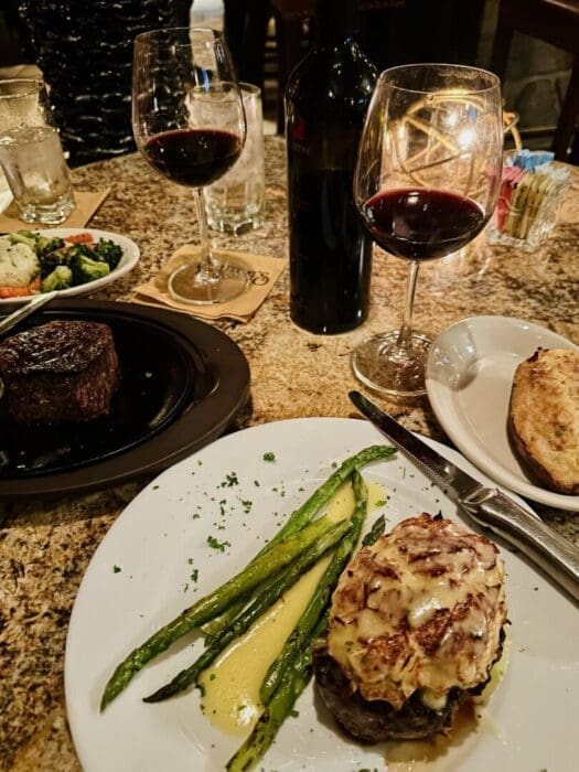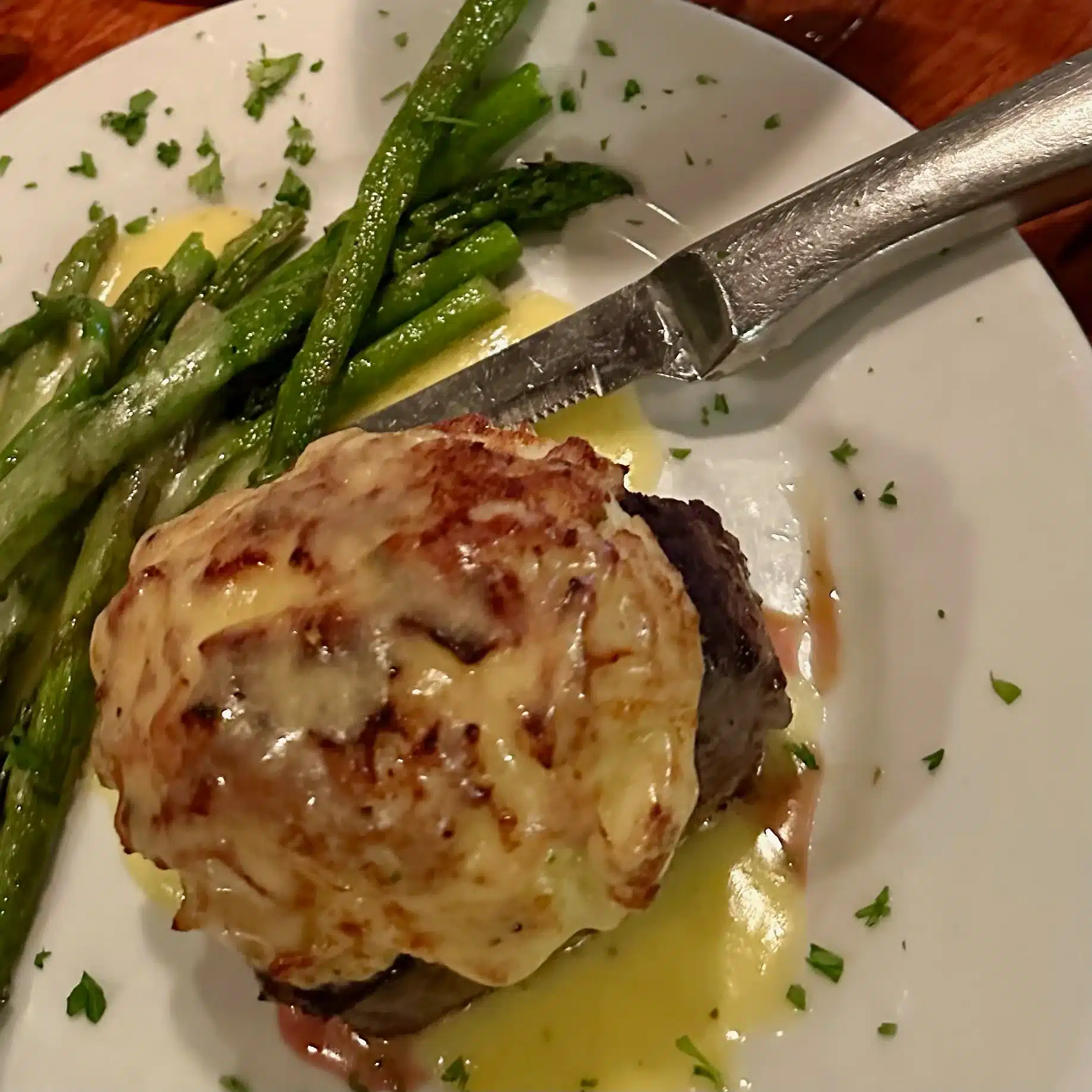 For Nicole, that came in the form of the Dutch’s Filet Oscar (Filet Mignon Topped with Crab Imperial, Asparagus, and Hollandaise Sauce)…wow.