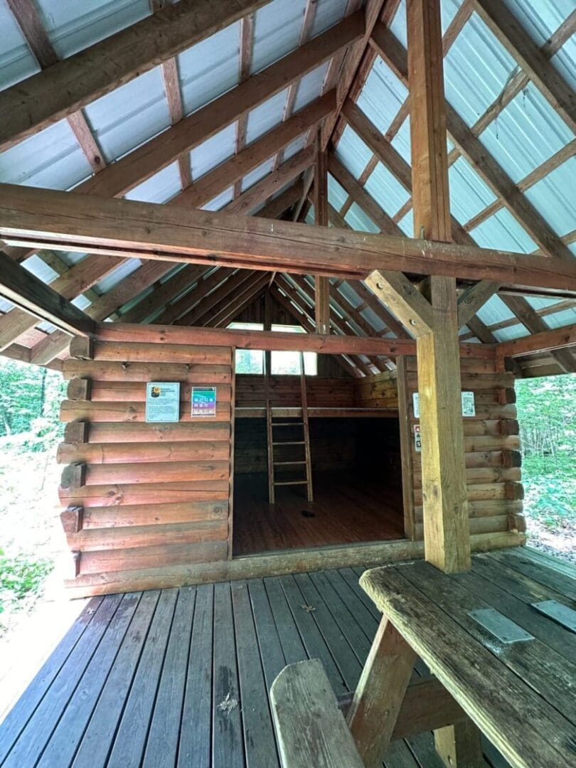At the top of the climb are signs for the Raven Rock AT Shelter (go left) and Spring (go right, but it’s pretty much all the way back down). The shelter has many great tent sites, a big firepit area, a food locker, and a clean and well-maintained shelter.