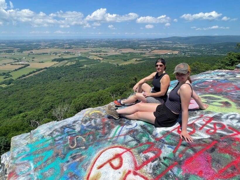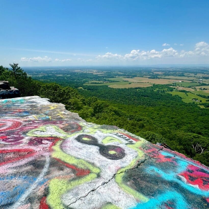 There is a set of stairs that used to lead to an observation tower. Now, they’re just there so you can have a picnic on a garishly painted rock (note: it used to be a hang glide launch pad). The view is breathtaking—you can see past Hagerstown into the PA mountains to the north and west and south towards Shenandoah in Virginia.