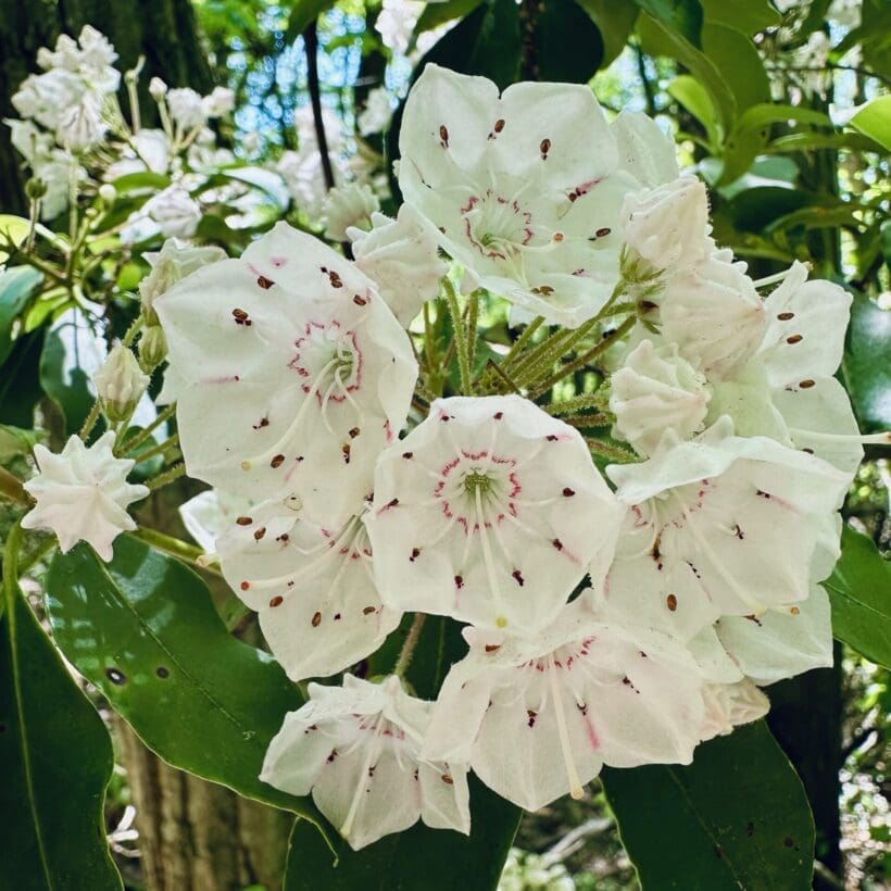 We saved the Raven Rock lookout for the way down – that was me. I like to climb out of the way while it’s still cool and my legs are fresh. We saw several deer on the way up, and the mountain laurels were starting to add white pops to the forest’s spring green.