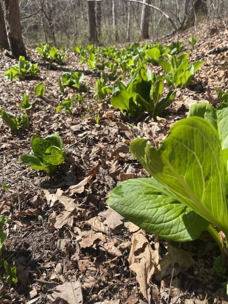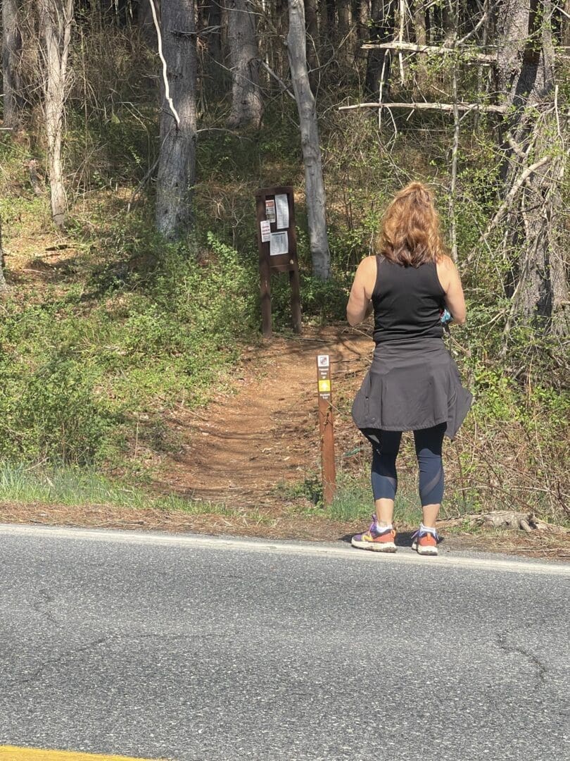 This hike begins by crossing the road from the parking lot and proceeding to the trailhead for the Bootjack trail.