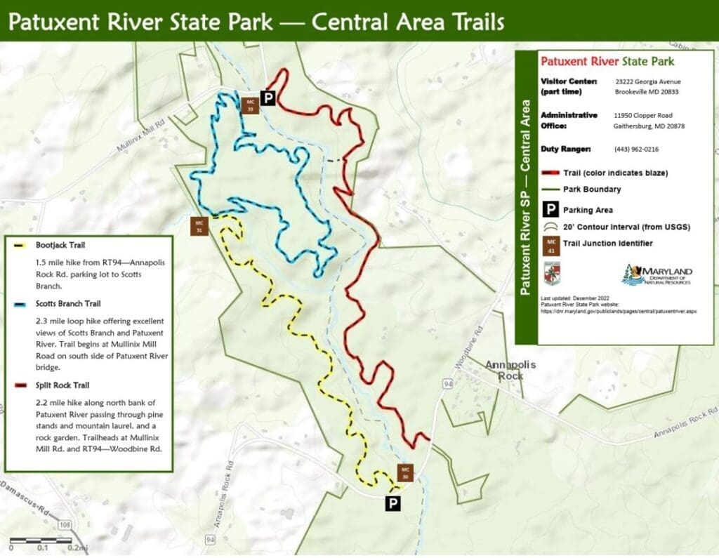 Patuxent River State Park (map) is east of Damascus, straddling Howard and Montgomery counties. It’s a long, extended park with multiple access points and parking areas, and it’s great for a variety of activities.