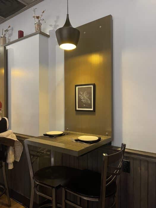 Sidecar is a long, narrow place with an upscale bar and tables scattered throughout. Its bright and shinny, with a big city atmosphere. We highly recommend sitting at the bar. But the seats facing the window are a prime place to sit as well. You can watch downtown Frederick pass you buy while you eat and drink.