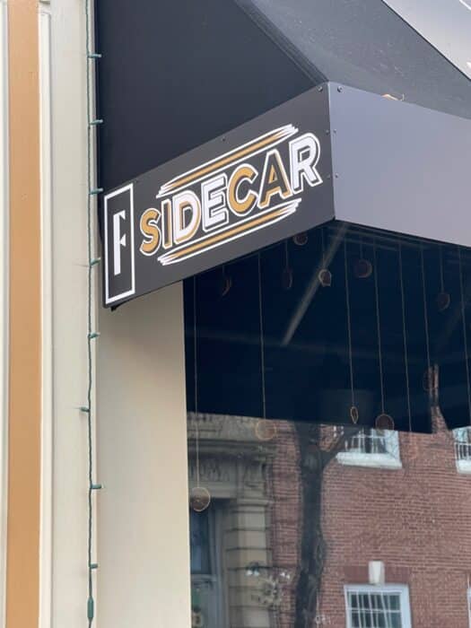 Sidecar has an unassuming black awning with a sign, and a basic logo sign on the door. You almost have to be looking for it to find it, despite being in the middle of the busiest part of downtown Frederick.