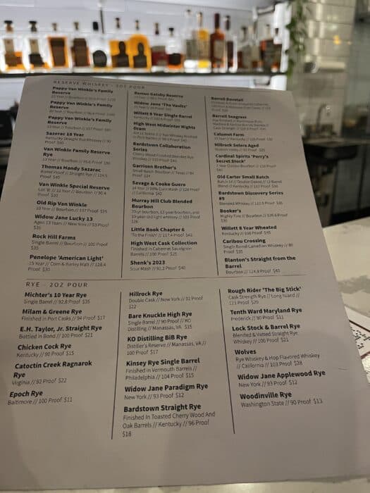 The list includes premium small-batch bourbons like Pappy Van Winkles, Sazerac, and Calumet Farm. But also local whiskeys, such as one of my personal favorites, Catoctin Creek from Loudoun County. Frederick’s own Tenth Ward and McClintock are prominently featured as well.