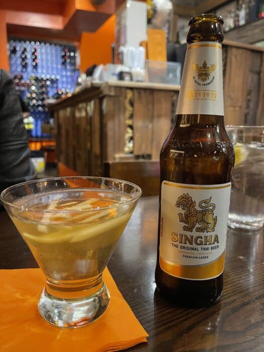 There is no bar at Sumittra, but that doesn’t mean you can’t have drinks. It has a great selection of beer, wine, and cocktails. On our last visit, Nicole had a ginger-themed vodka cocktail.